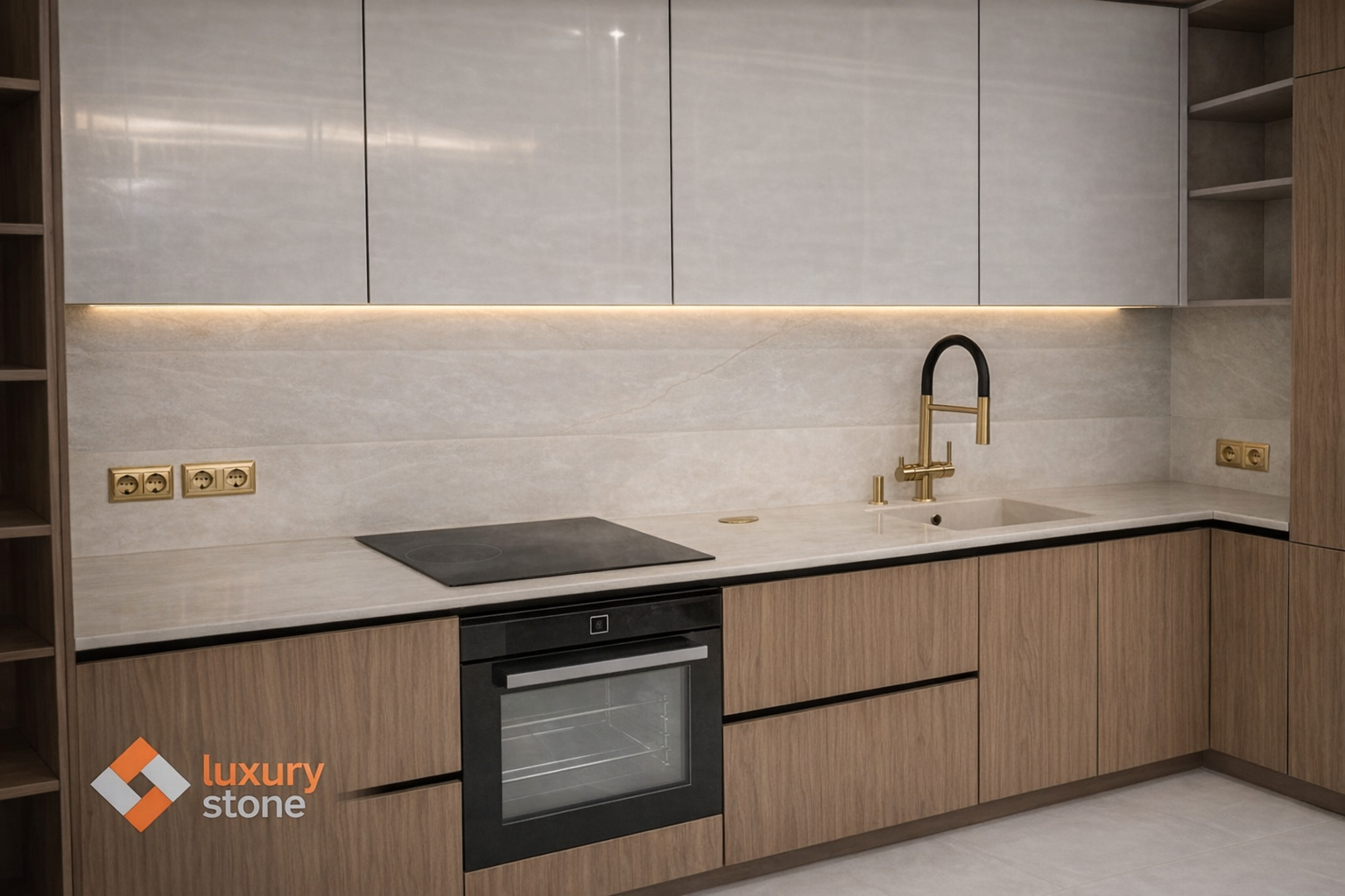 Столешница и фартук для кухни, из кварцевого агломерата Aleph Stone А95 Desert Rose