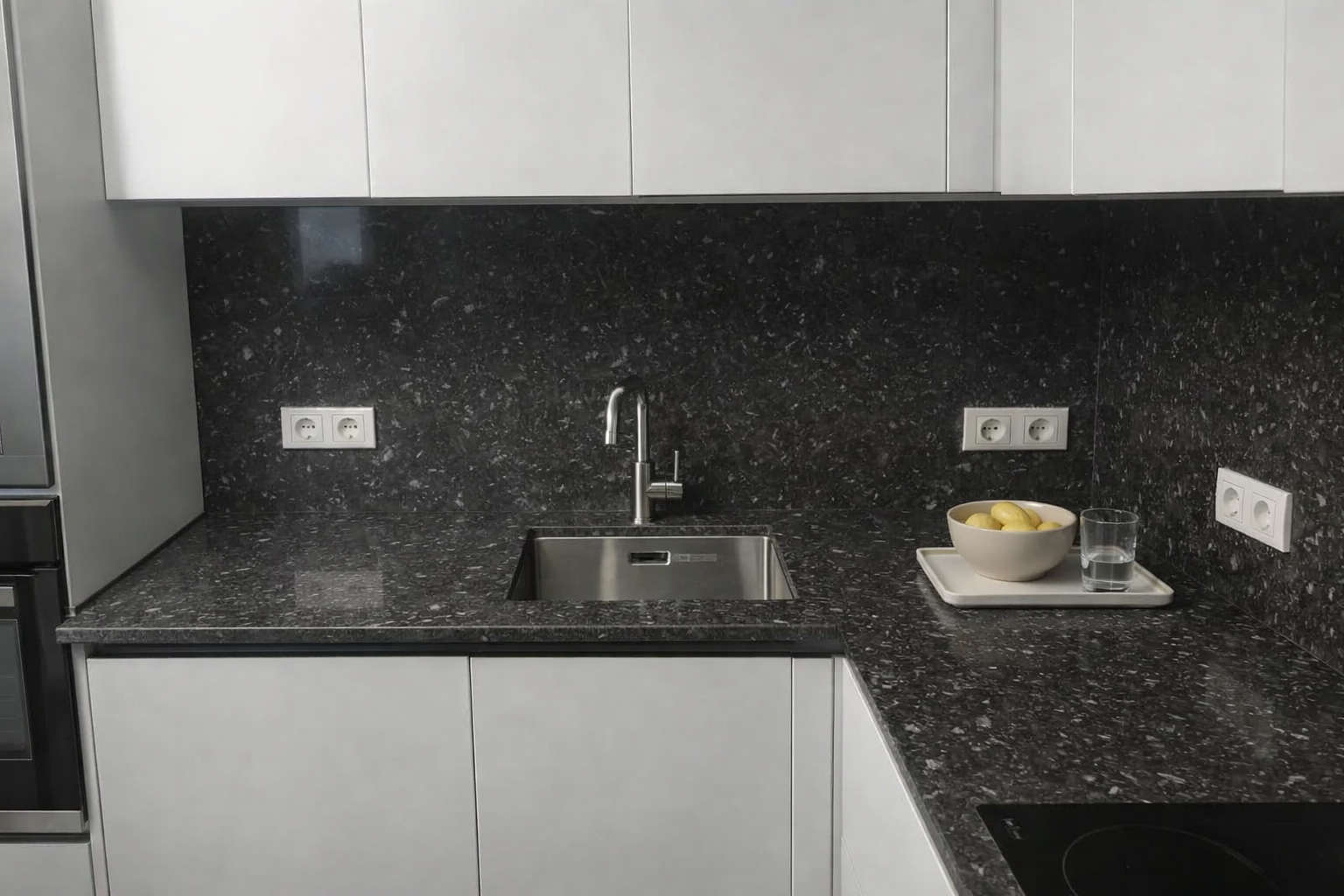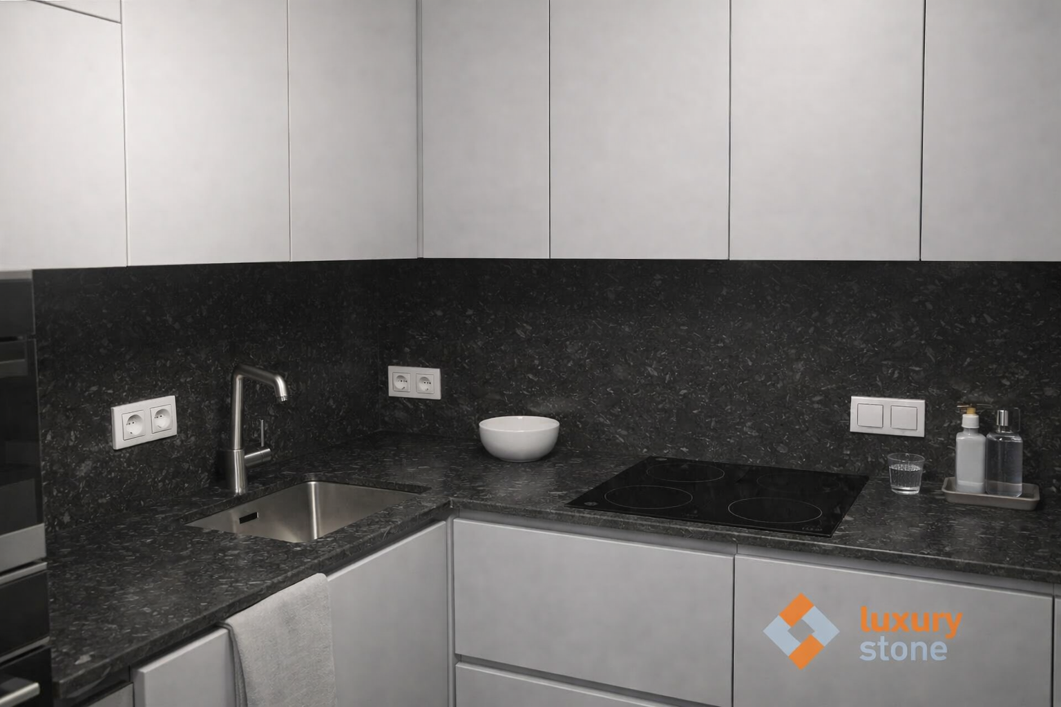 Столешница и фартук для кухни, из кварцевого агломерата Аварус R677 Московская ночь
