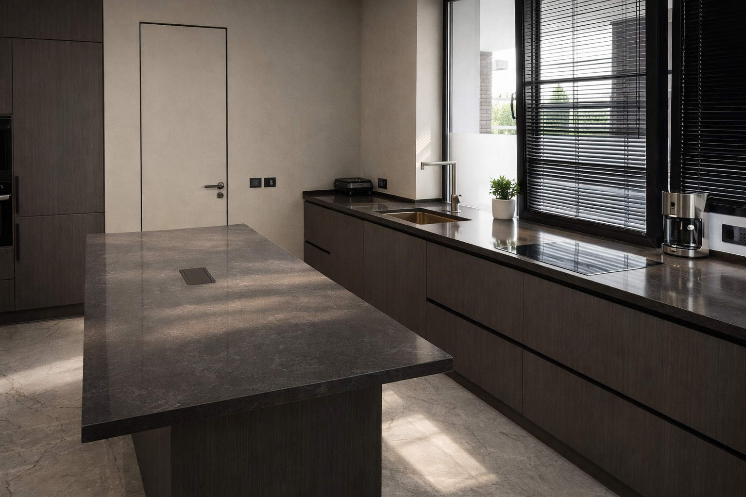 Столешница для кухни, с островом, из кварцевого агломерата Аварус R503 Уральские горы