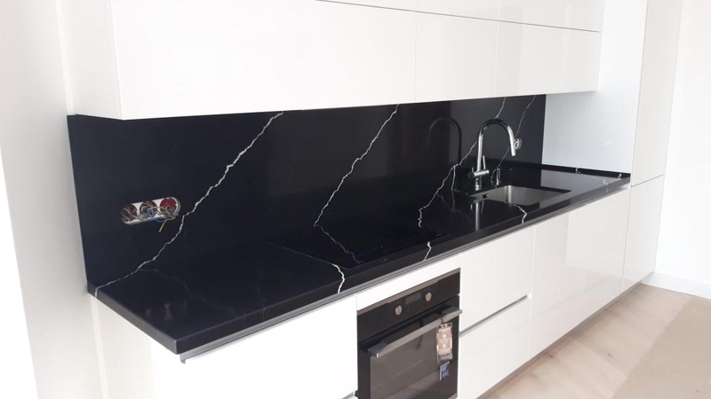 Идеальную симметрию и стыковку столешниц, фартуков и подоконников для угловых кухонь, островов или парных изделий.
